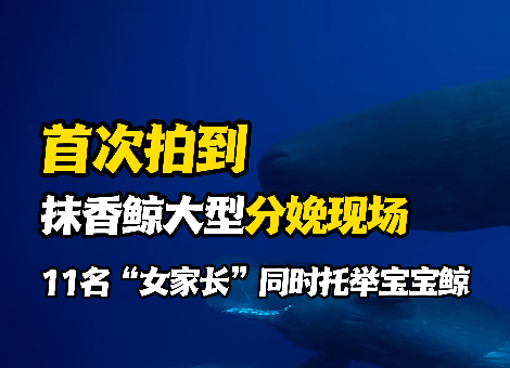 首次拍到抹香鲸大型分娩现场!11名“女家长”同时托举宝宝鲸